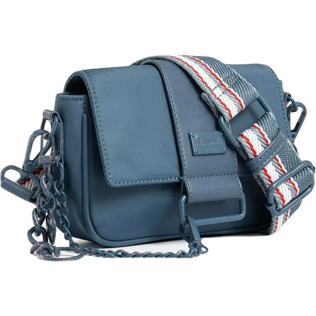 Bolso tipo baguette pequeño con tapa y cadena decorativa. Cuenta con cargadera de colección en líneas de contraste y tiene un llavero metálico removible. Los herrajes son metálicos pintados en técnica de goteo en contraste y forros en contraste imitando la misma técnica usada en el herraje, para darle un toque único a tus outfits y a tu estilo.