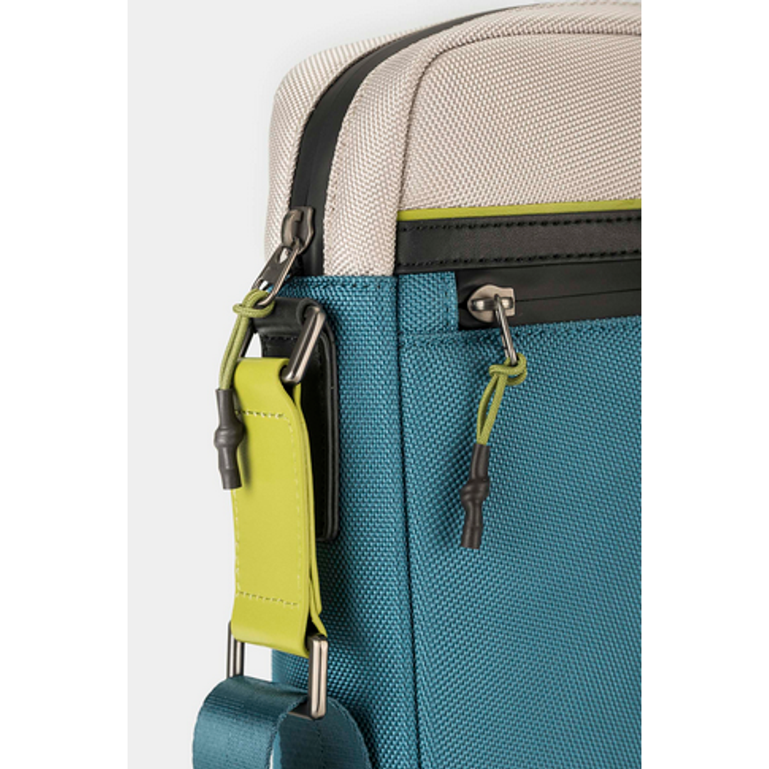 | - Lona repelente al agua - Detalles en cuero contraste - Marcación Vélez en caucho - Cargadera en reata ajustable a través de trabilla - Sistema de cierre con cremallera - Bolsillo frontal con cremallera - Bolsillo posterior de seguridad - Forro contramarcado | |