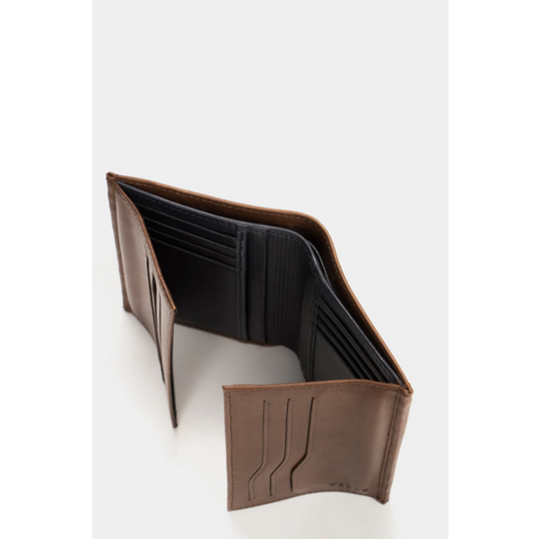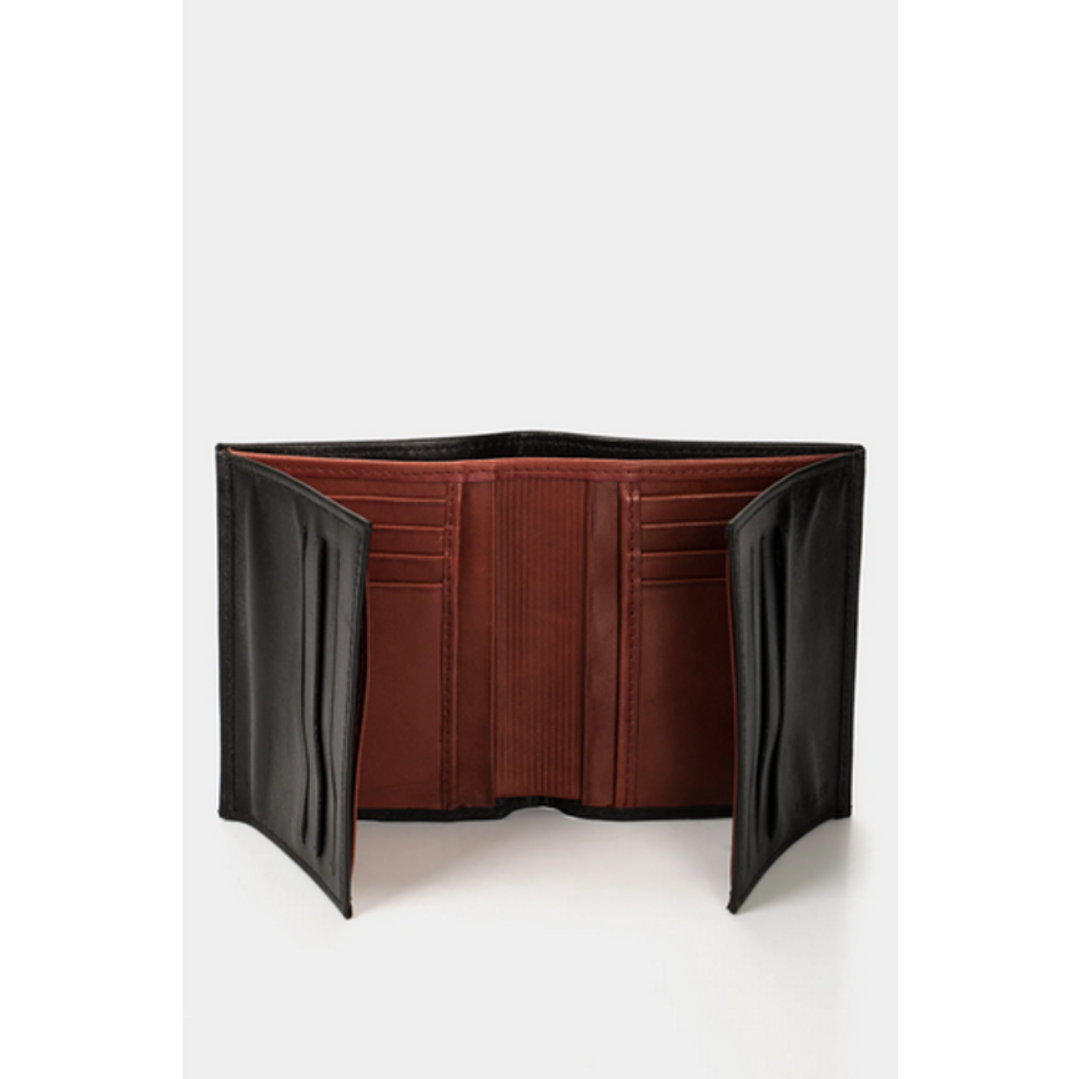 Diseño Vertical, ligero y tradicional, con detalles de color característicos en costuras decorativas. Nuestra billetera de cuero con 4 cuerpos ofrece funcionalidad interna y detalles de color en contraste.