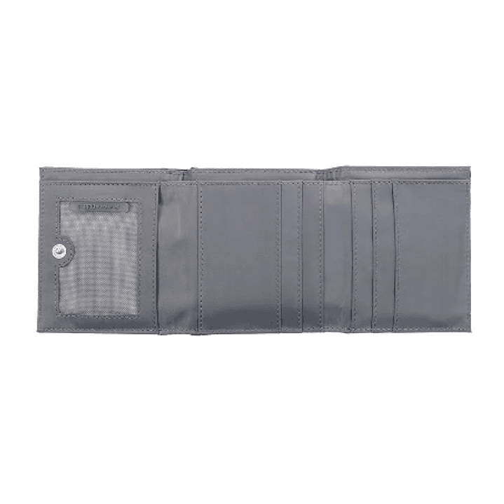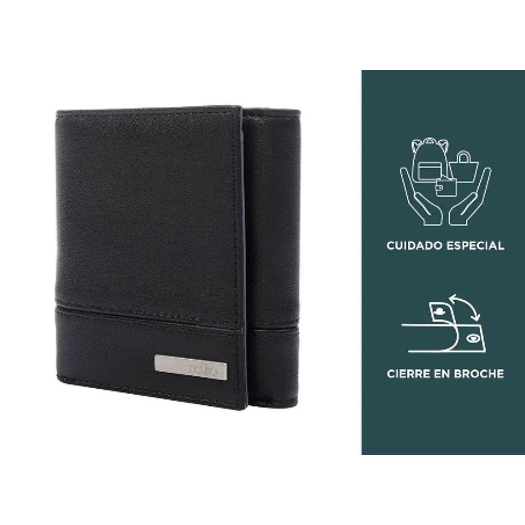 ¡Sencilla y elegante! Esta billetera es perfecta para tu día a día en el trabajo, está fabricada en lona con detalles en cuero sintético, tiene tres cuerpos con cierre en broche, seis organizadores para tarjetas, uno para billetes, bolsillo en malla plástica y sistema RFID blocker para evitar la clonación de tarjetas.