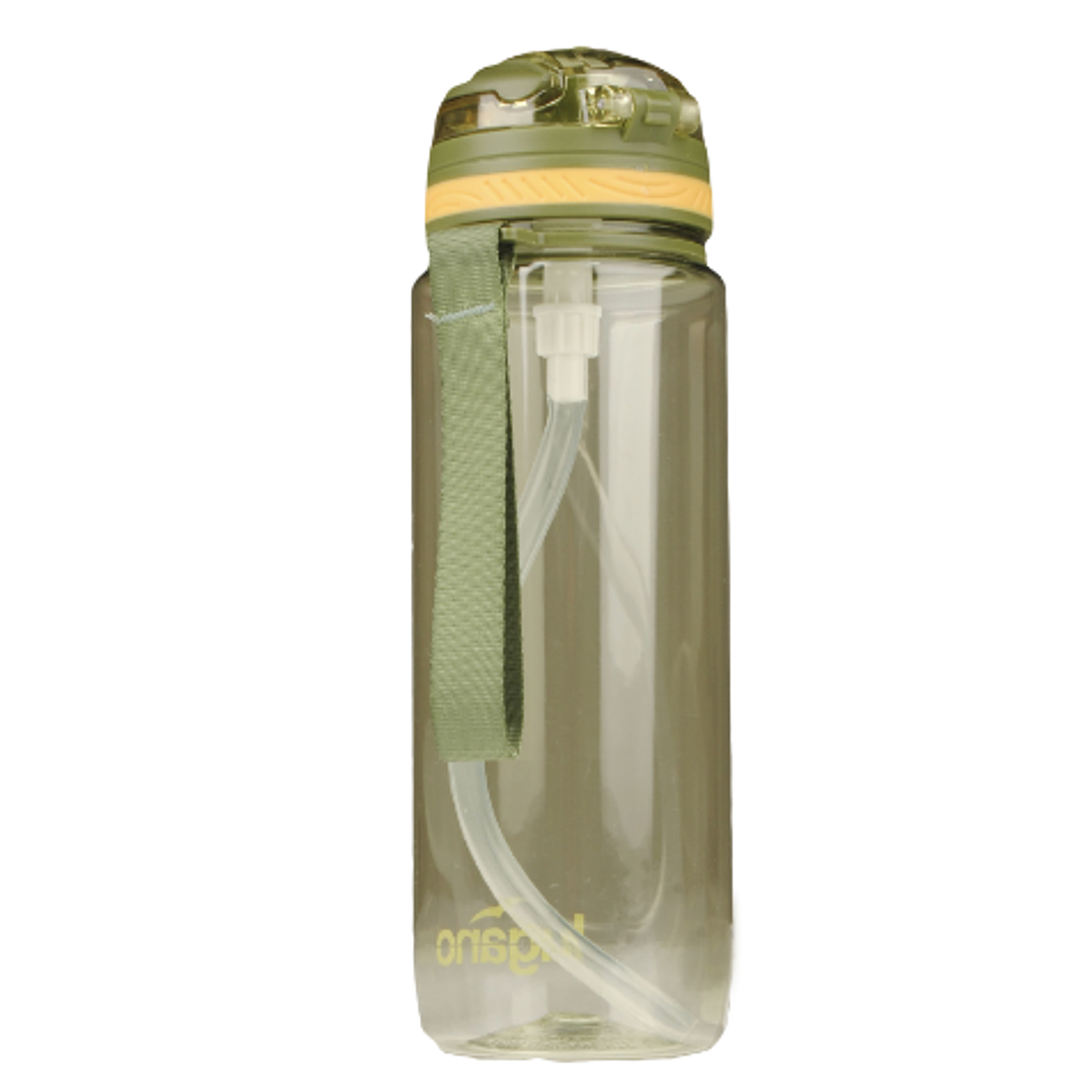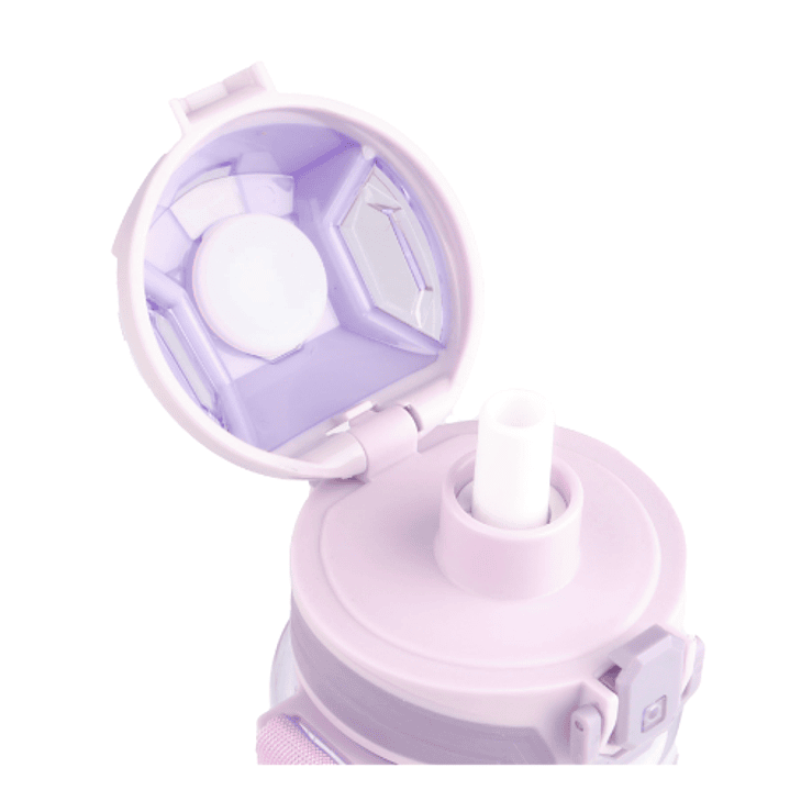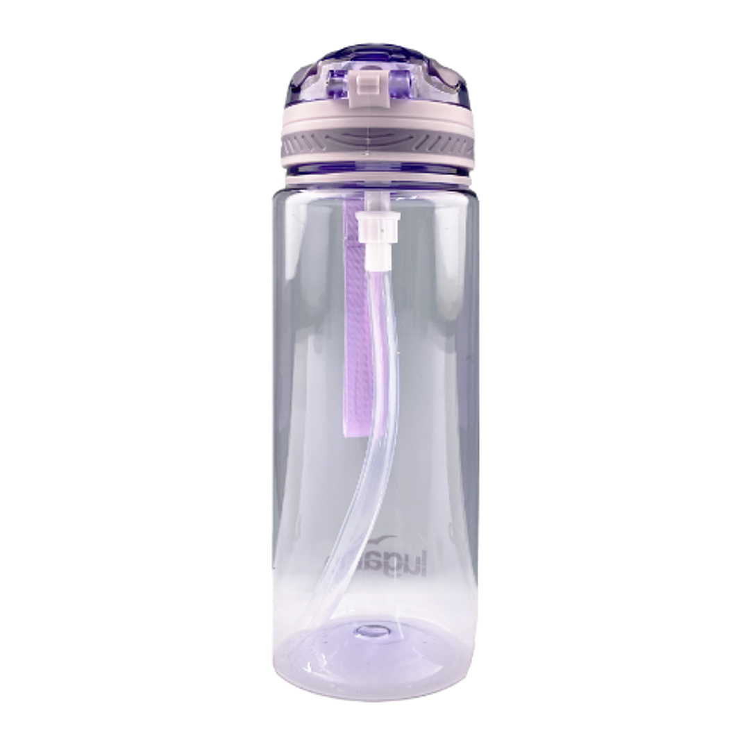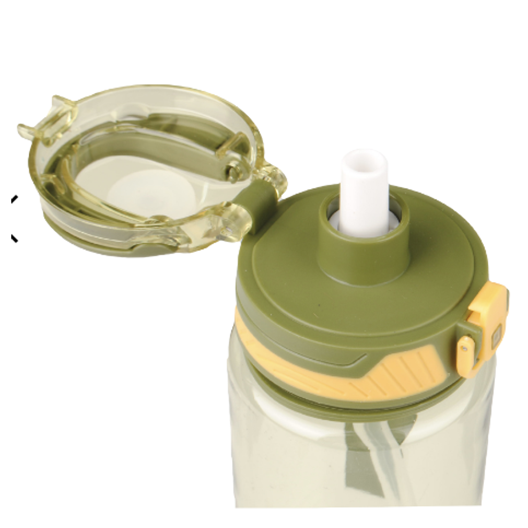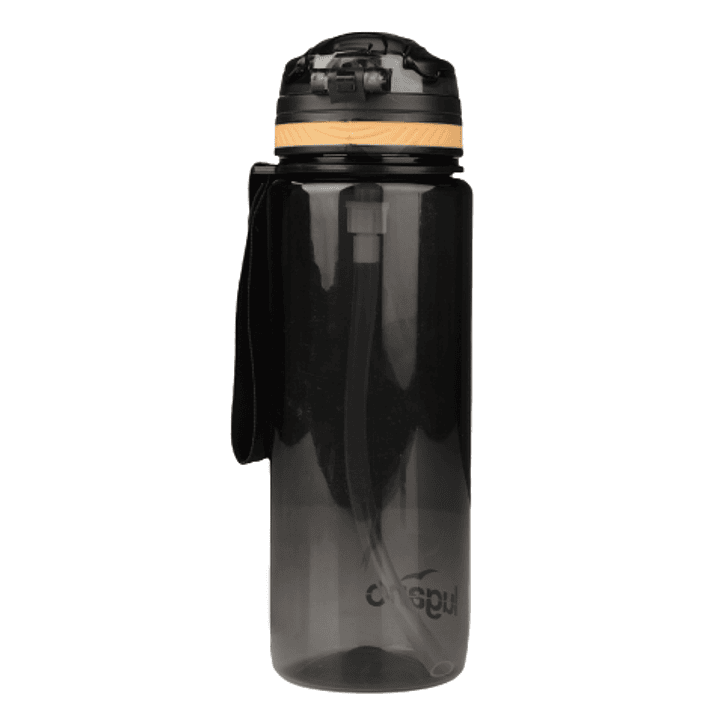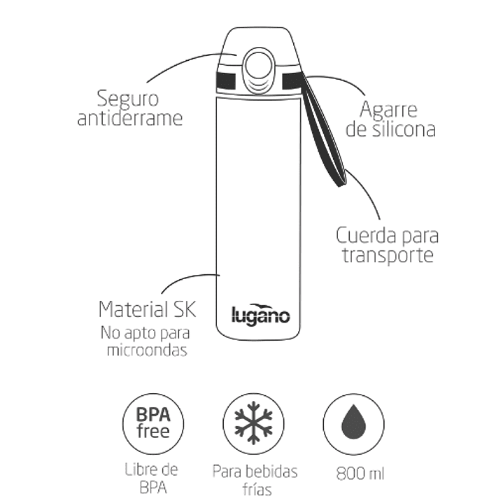 Botella con diseño deportivo de 800ml, libre de BPA, material SK, para bebidas frias, lavado a mano, con correa para mejor agarre, seguro anti derrame, agarre de silicona e incluye pitillo.