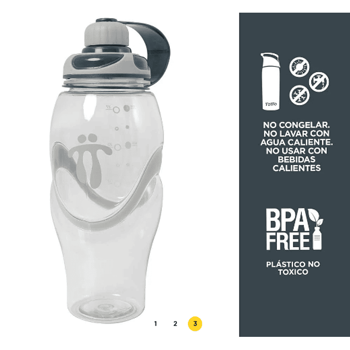| Material | Tapa: Polipropileno=100%, Cuerpo Botellon: Tritan=100%, |