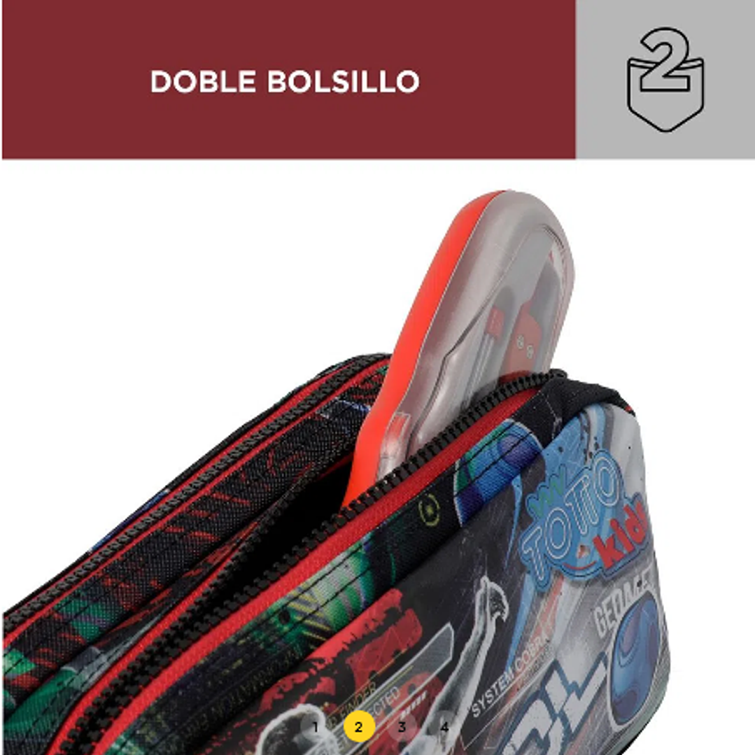 ¡Serás todo un campeón con esta cartuchera! Un diseño ideal para cualquier deportista. Esta cartuchera para niño viene con dos compartimentos y manija lateral en reata. Incluye estampado en la parte posterior para marcar con tu nombre para que nunca se te pierda.