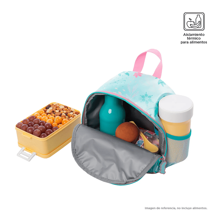 ¡Prepara los mejores almuerzos con la Lonchera Frozen Destiny! Es ideal para niñas, amplia, práctica con aislamiento térmico. Su material repelente a líquidos facilita la limpieza. Con un compartimento principal de cierre doble cremallera y bolsillos laterales con elásticos para botellas, es muy funcional. Incluye una reata ajustable para llevarla al hombro o cruzada, y una banda posterior para anclarla al morral de ruedas.