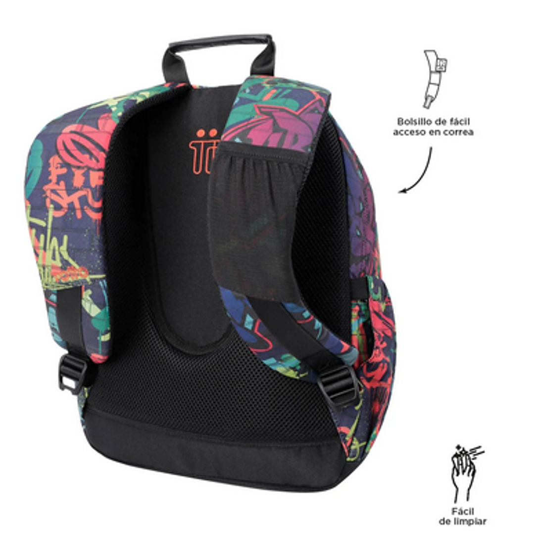 Este bolso juvenil mediano es la opción perfecta para todos. Con capacidad para laptops de hasta 13", está confeccionado con lona RPET, reciclando aproximadamente 9 botellas de plástico. Incluye un organizador con portallave, bolsillos laterales para botellas o sombrillas, bolsillo en malla con elástico para llevar carné o tarjeta, y dos bolsillos frontales de acceso rápido con cierre en cremallera. Sus correas ergonómicas con air mesh ofrece comodidad, y su exterior y forro de poliéster al 100% garantizan durabilidad.