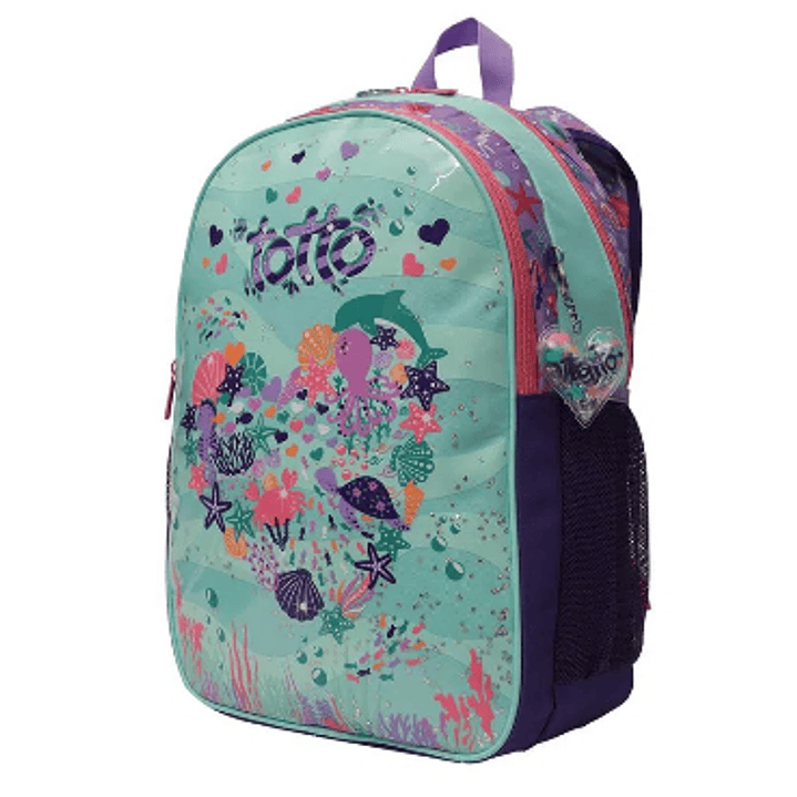 Nada supera tus ganas de aprender. Este morral para niña está fabricado en una mezcla de poliéster y acetato. Cuenta con dos compartimentos con cierre en cremallera, manija superior y portabotellas. Viene con un lindo llavero en forma de corazón y un espacio para marcarlo con tu nombre en la parte posterior. Su espacio y comodidad te sorprenderán.