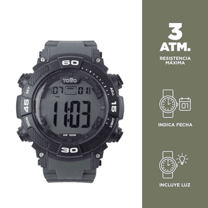 ¡Que no existan los límites de tiempo! Este reloj digital para hombre viene con un cómodo pulso en silicona y es sumergible a 1 ATM. Incluye función de fecha, luz, cronometro y alarma. Viene en formato de 12 horas. Incluye caja metálica reutilizable.